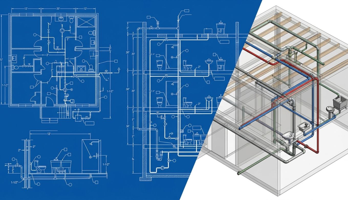 Precise 2D and 3D plumbing drawings that support design documentation, code compliance, fabrication, and construction for water supply, drainage, and specialty piping systems.